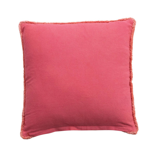 20" Square Cotton Velvet Pillow with Hand-Beaded Cherries & Tufted Fringe, Pink, Red & Green