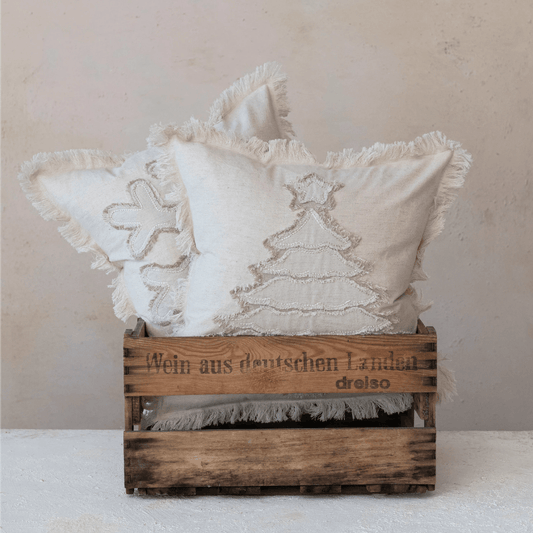 20" Square Pillow with Gifts, Embroidery, Piping & Velvet Back