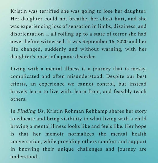 "Finding Us, A Mother's Memoir of Braving Mental Illness with Her Young Daughter" (Authored by Kristin Rohman Rehkamp)