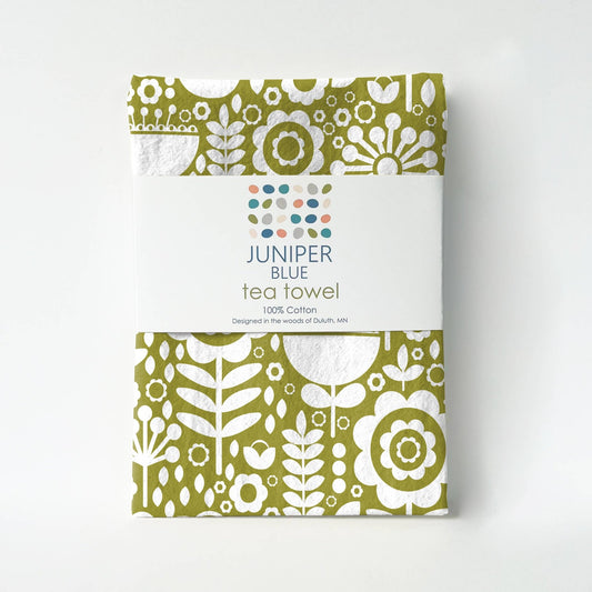 Cotton Tea Towel-Folk Flowers Leaf