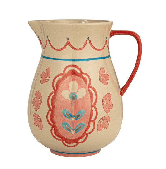 <For Store, Pick-Up, or Local Delivery Purchase Only> 3 Quart Hand-Painted Stoneware Pitcher w/ Flowers
