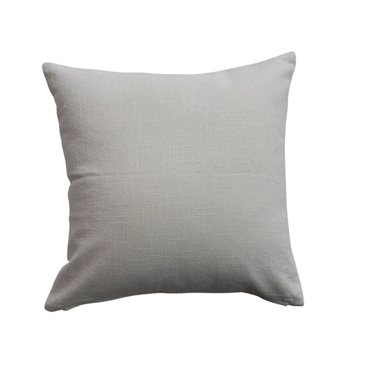Square Cotton Slub Printed Pillow w/ Hand-Embroidery & Red Back