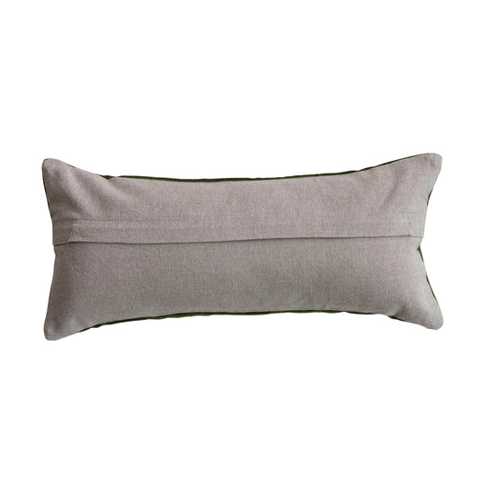 24"L x 16"H Woven Cotton Slub Lumbar Pillow w/ Embroidered Pattern