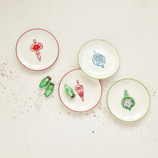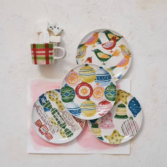 Stoneware Plate w/ Seasonal Pattern, 4 Styles
