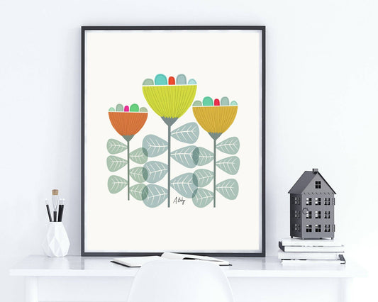 Mod Bud Flowers Wall Art Print and Frame