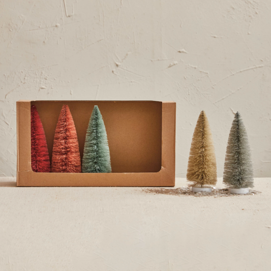 Sisal Bottle Brush Trees w/ Wood Bases, Multi Color