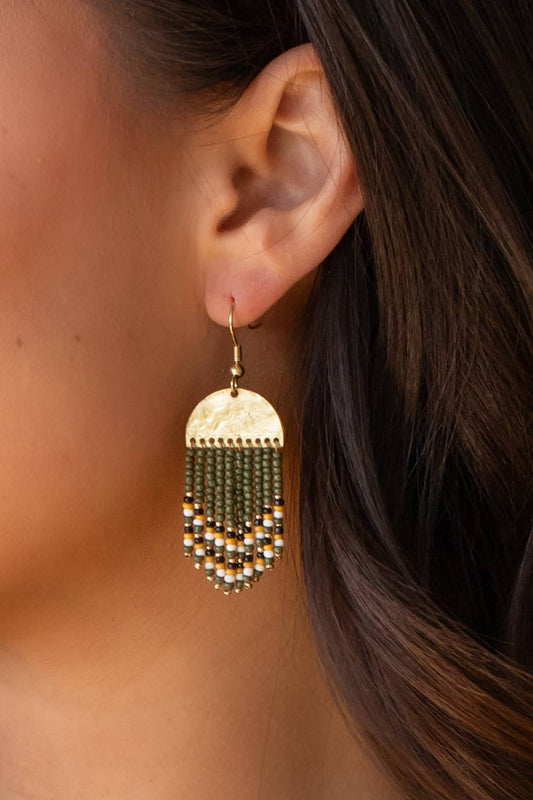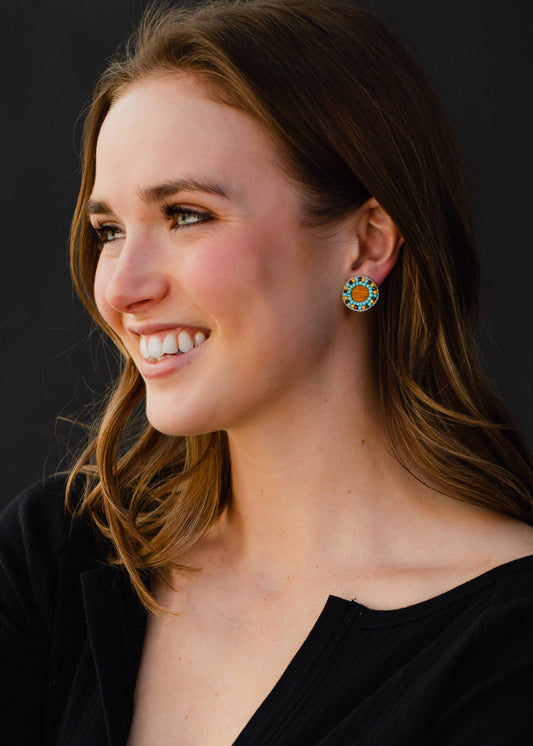 Brown, Yellow & Lt. Blue Beaded Stud Earrings
