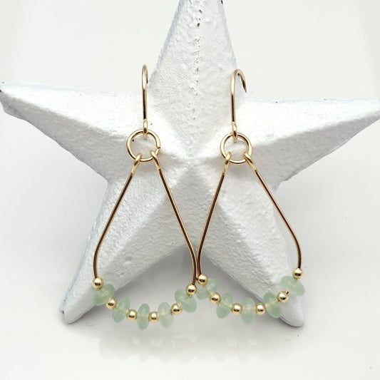 Gold & Green Aventurine Teardrop Hoop Earrings