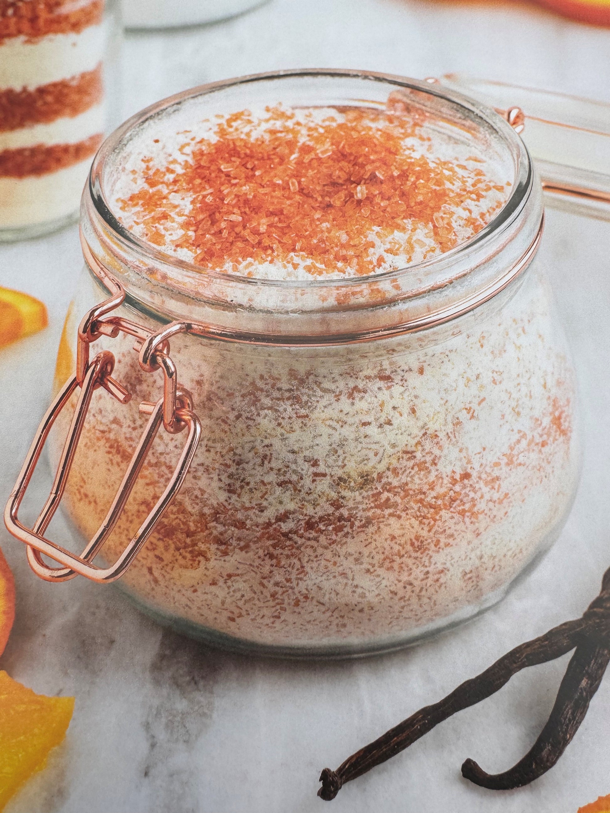 - Orange & Vanilla Coconut Milk Bath – soothing sea salt and powdered coconut milk scented with orange and vanilla essential oils and tinted with carrot powder to create a luxurious and relaxing bath.
