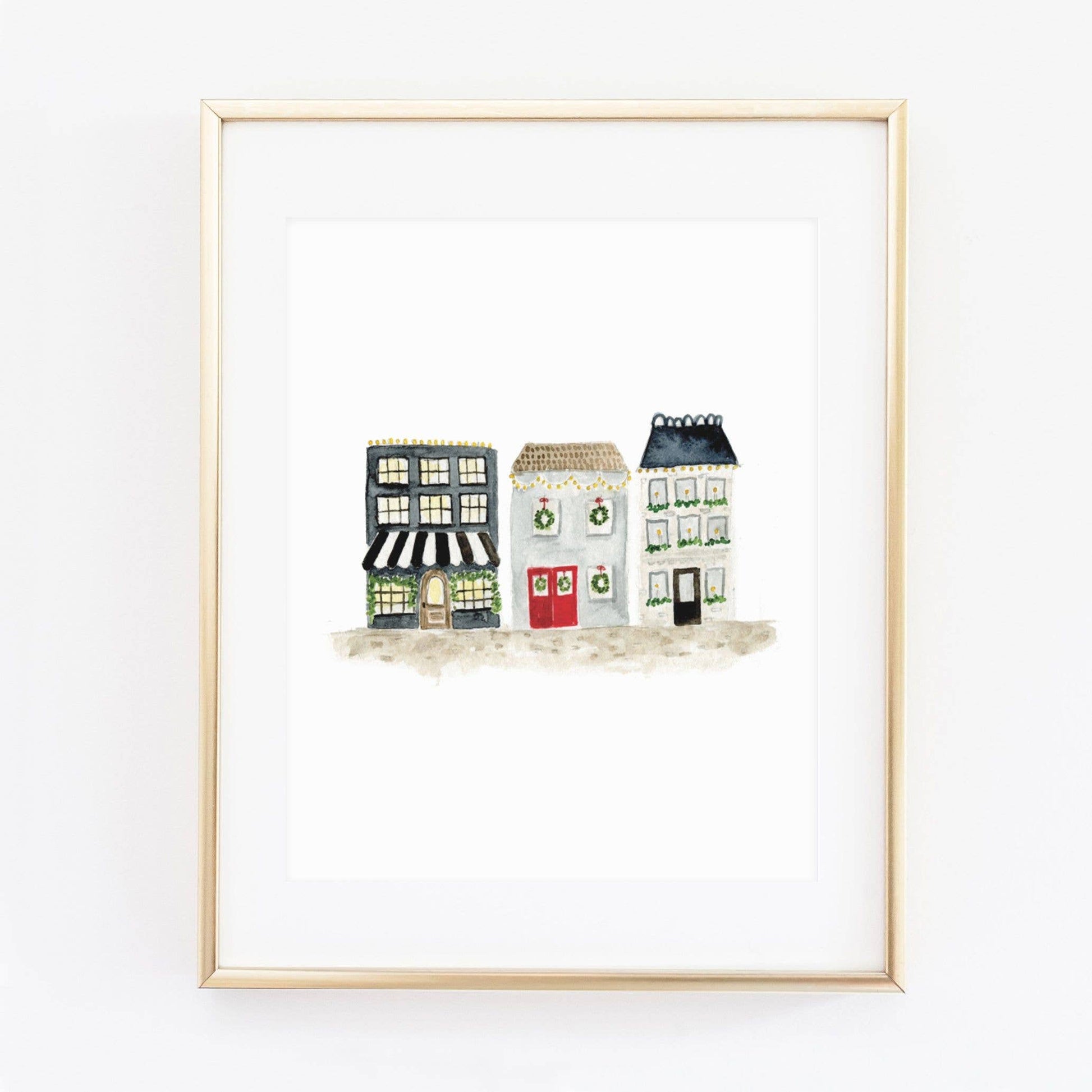 Add a festive touch to your home this Christmas season with the Christmas Village watercolor print.
