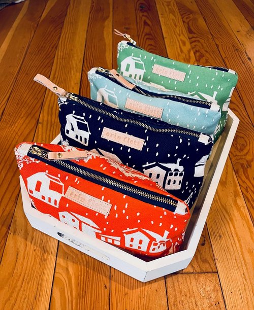Each color is hand silk-screened printed + sewn in Maine one at a time just for you. Each bag is wonderfully unique.