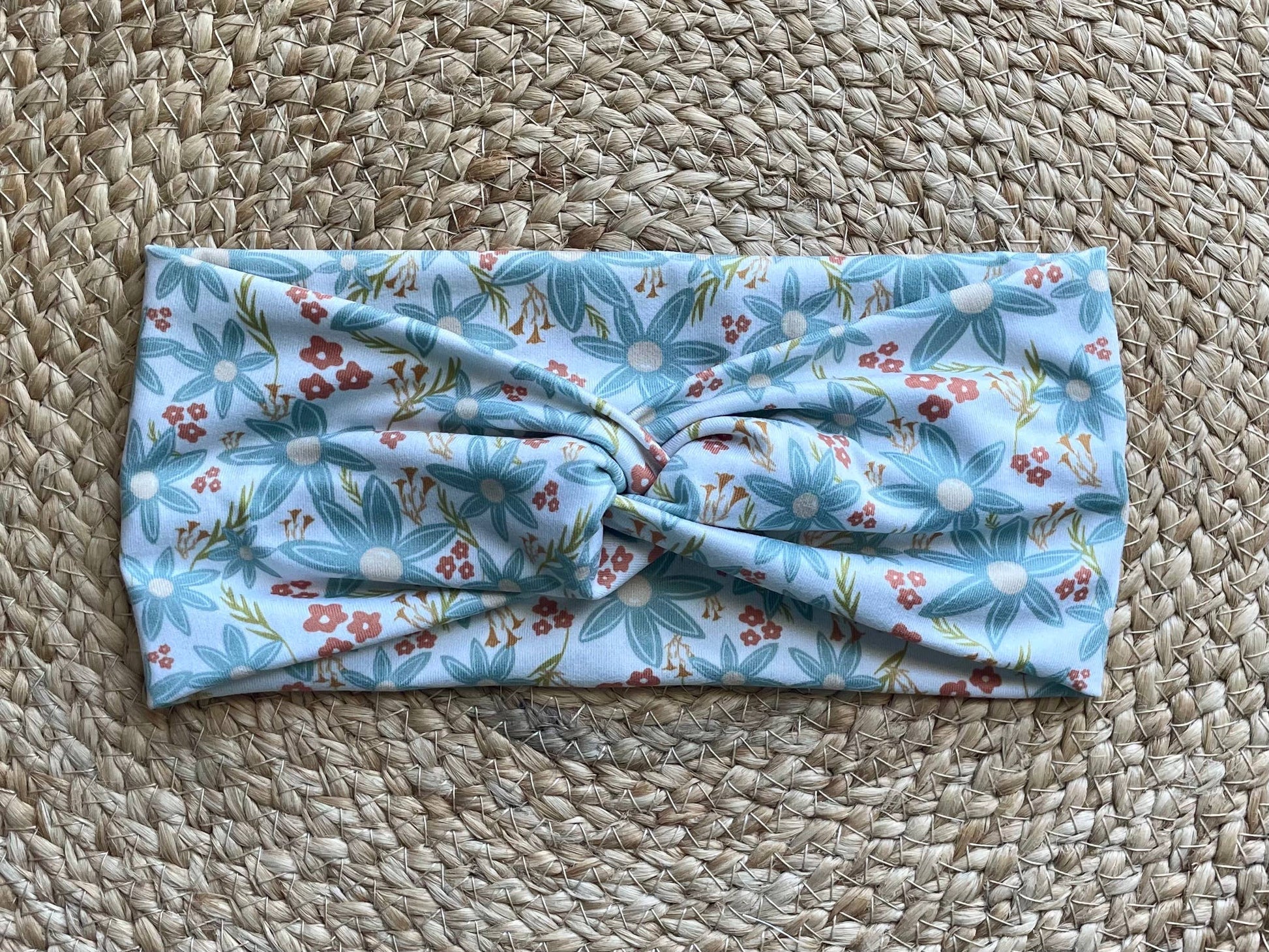 This soft knit headband is made from a designer polyester spandex fabric and is stitched to allow stretch. It is comfortable to wear all day! Exact patterns may vary.