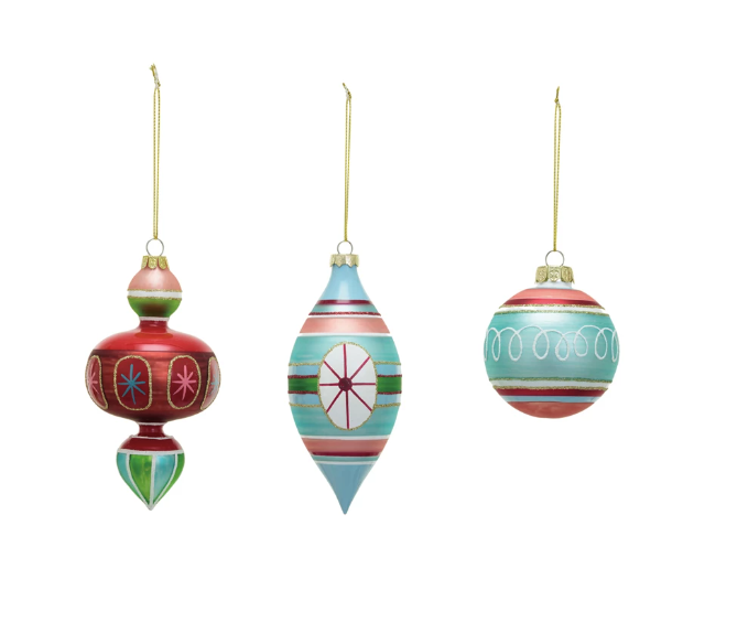 Glass Ornament w/ Pattern & Glitter, 3 Styles