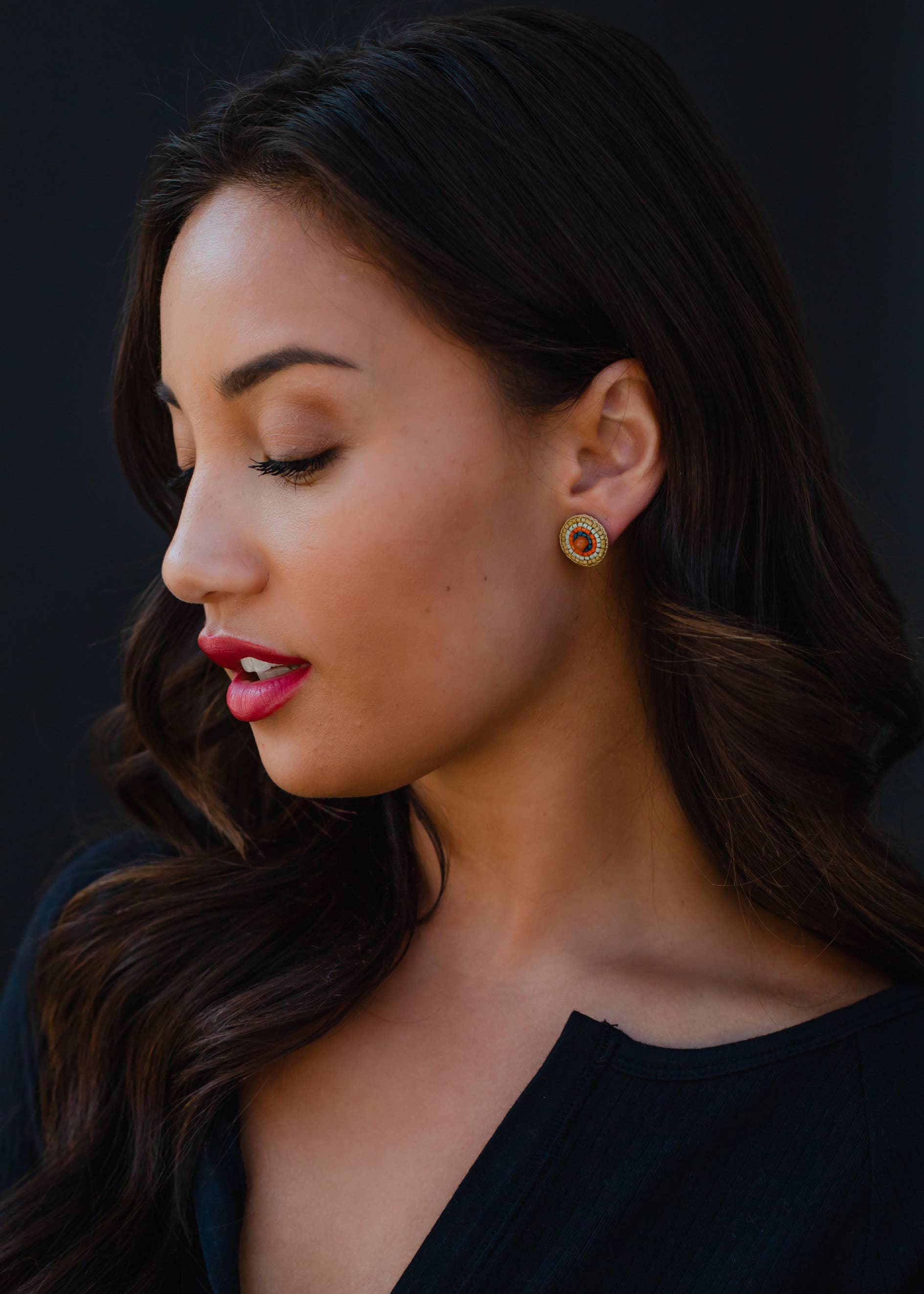 Green, Mint & Orange Beaded Stud Earrings