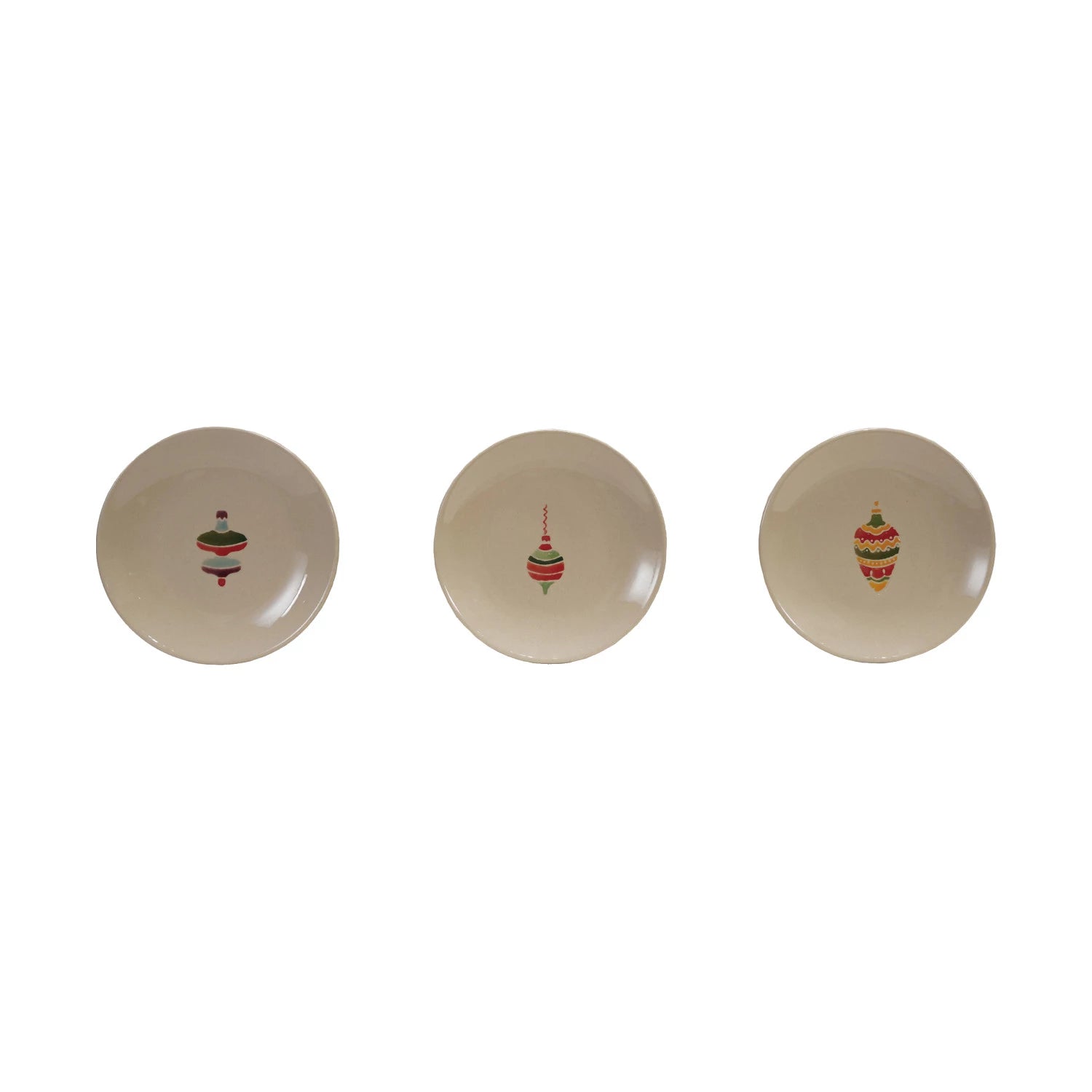 Hand-Painted Stoneware Plate with Wax Relief Image, 3 Styles