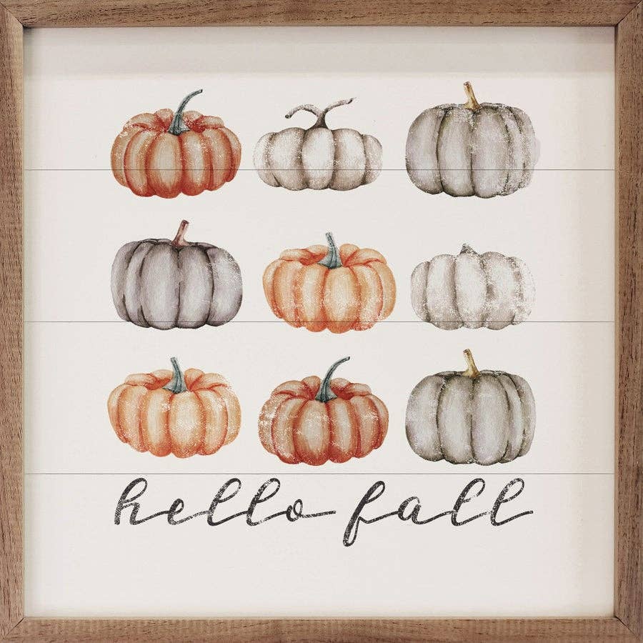 Hello Fall Orange And Gray Pumpkin Wall Art