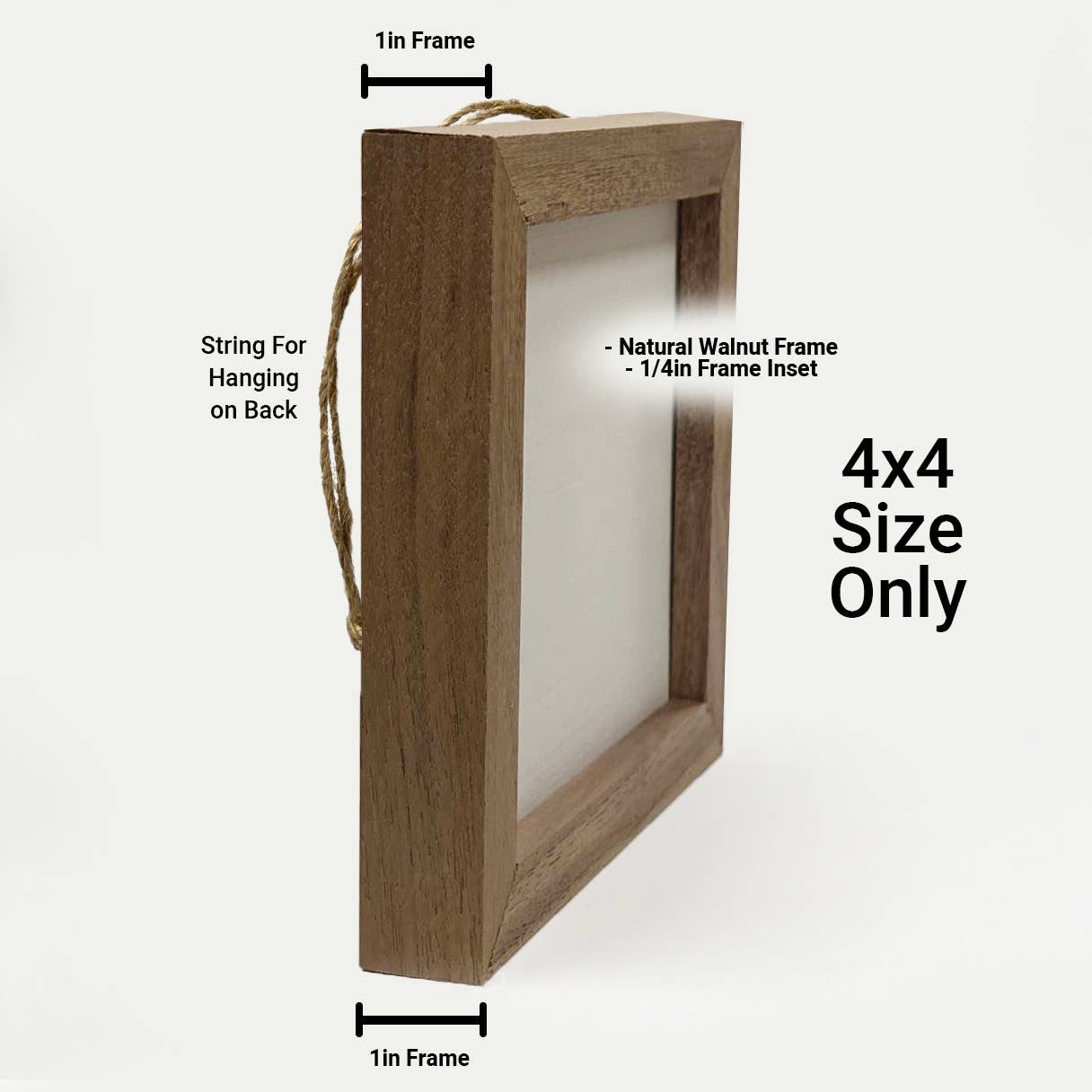 This unique piece is a simple way to bring beauty and charm to any wall or shelf within the home. It is made from high quality American hardwood planks with a hand painted face, and printed with UV cured ink, and is framed in a natural walnut frame. Each piece is unique with its own personality, marks, wood grain, and look. Easy to clean with a dry cloth.