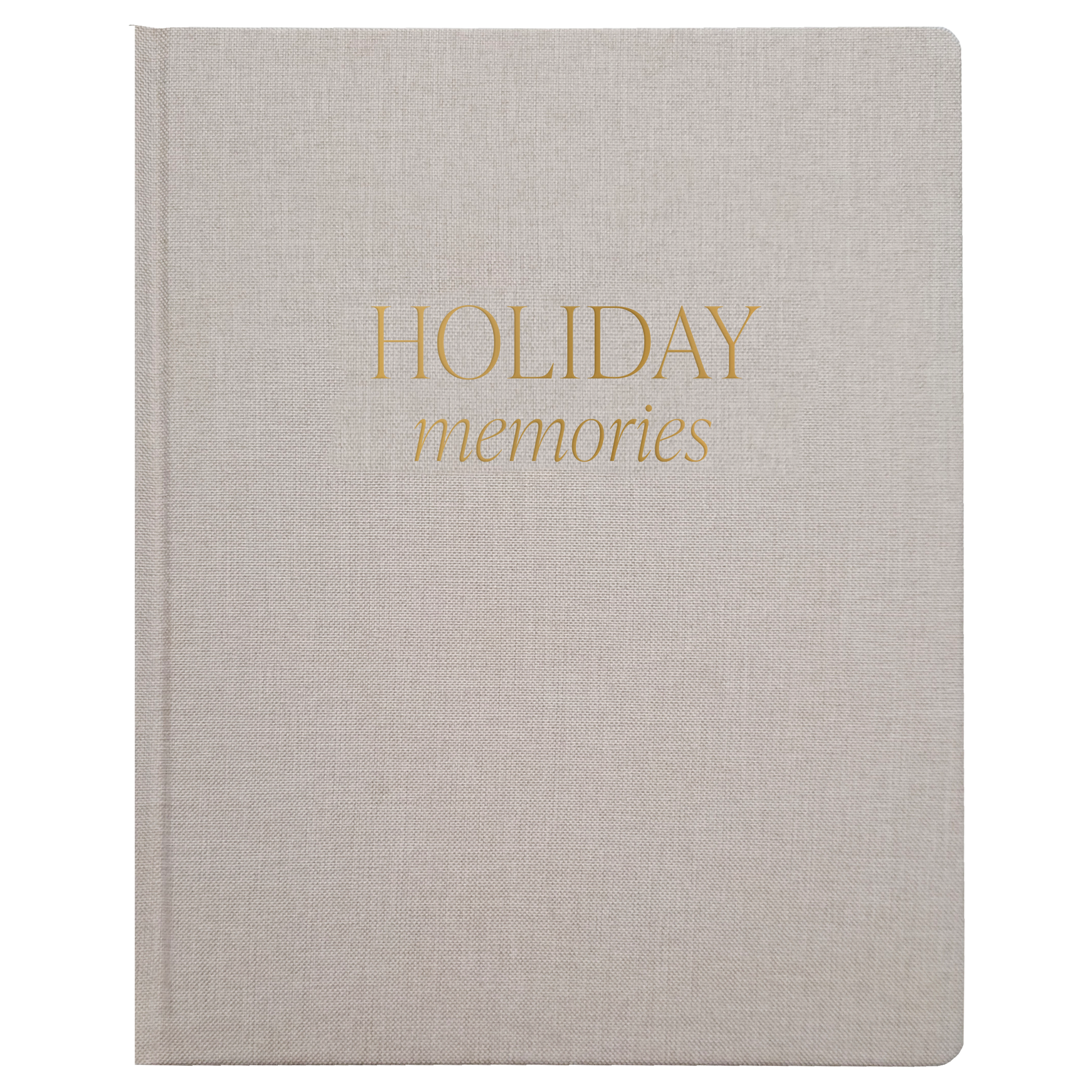 DETAILS: • Size: 9.5” H x 7.75” W x 0.60” D • Design: Holiday Memories • Prompted Journal • Neutral Fabric Journal with Black Details • 100gsm Uncoated Lined Paper • Satin Ribbon Bookmark in Neutral • 200 pages - 1 Year of Memories • Designed in the USA, Imported