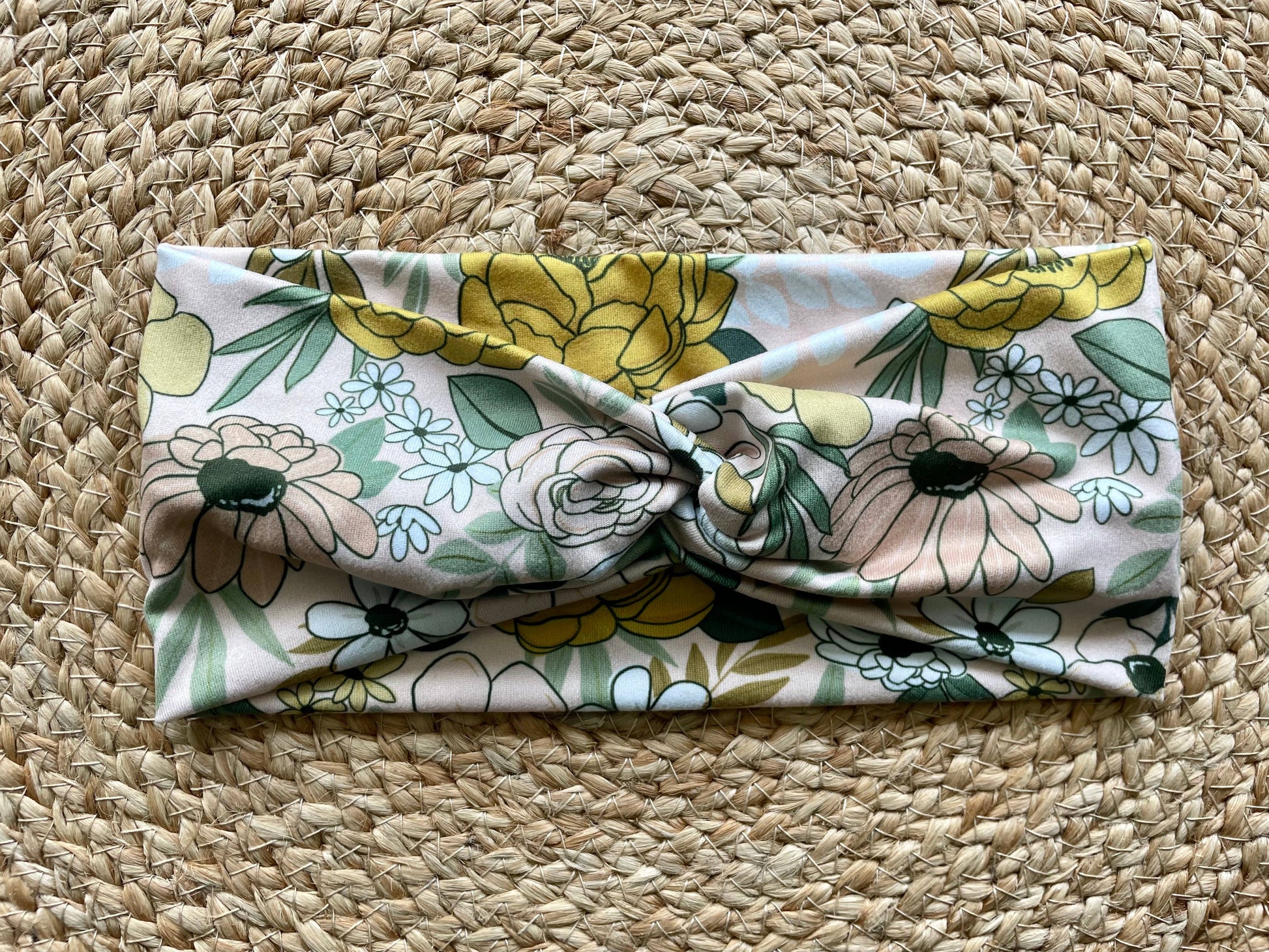 This soft knit headband is made from a designer double brushed polyester fabric and is stitched to allow stretch. It is comfortable to wear all day! Exact patterns may vary.
