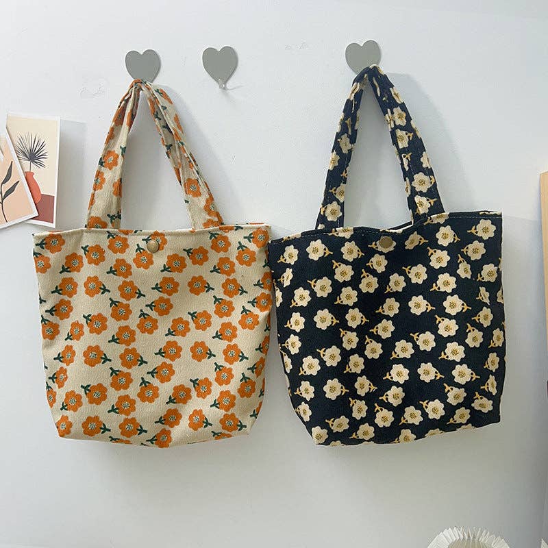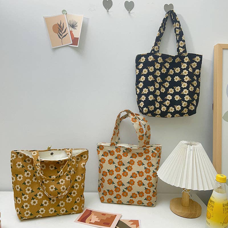 This charming tote features a vintage artistic design with delicate small flowers, perfect for adding a touch of elegance to any outfit.